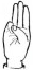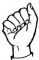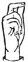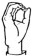 На ћирилици написано ЛАРА КОШУТАРАЦ састоји се из 13 слова [?]. Исписано ћириличном једноручном азбуком за глувонеме: